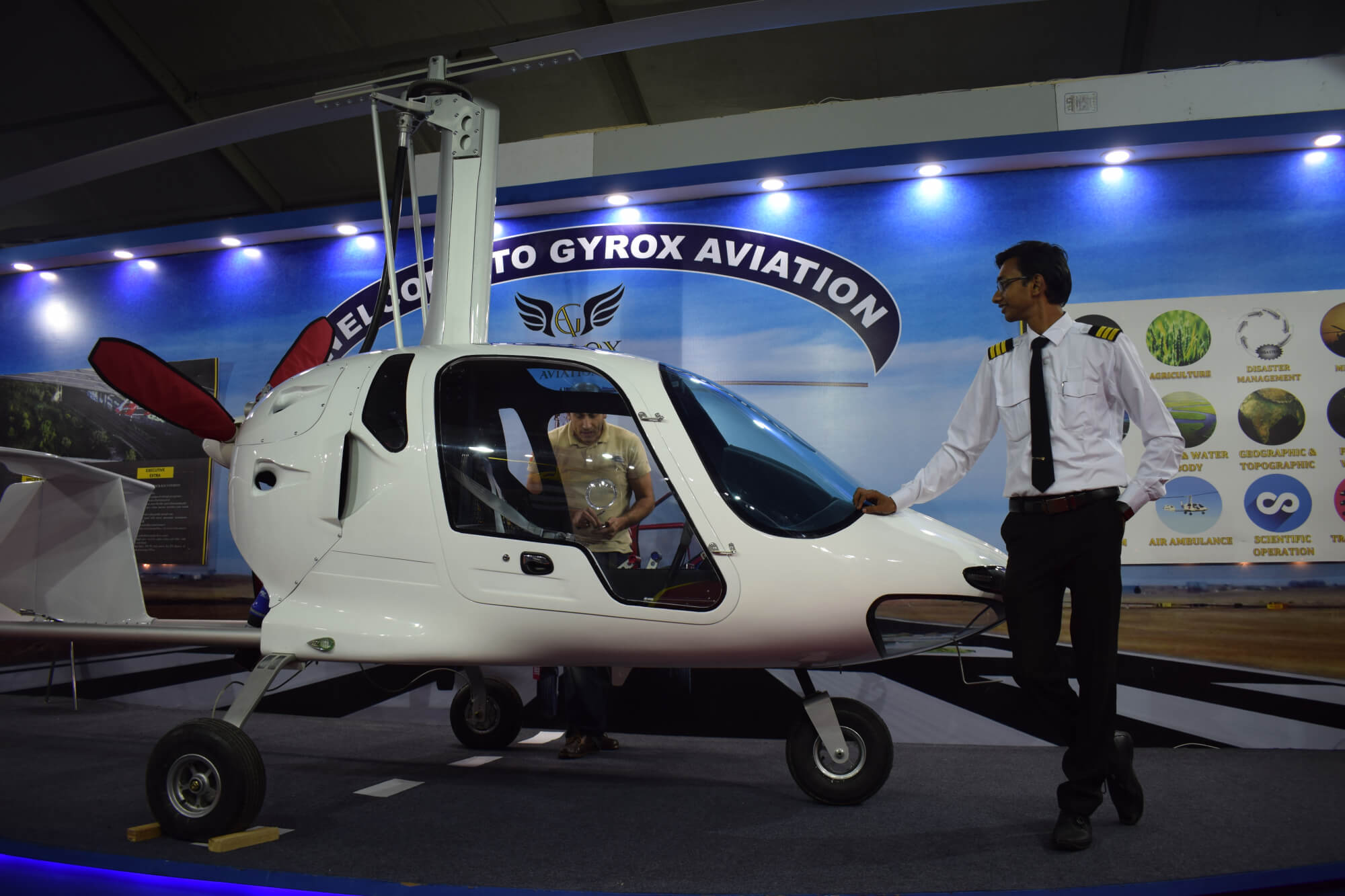 Gyrox Aviation Private Limited is an 100% Indian Startup,which has identified the utility and versatility of gyrocopter as an aerial platform with multifarious applications in the Defence, Central Police Organisations (CPOs), State Police for law enforcement, disaster management, medical evacuation and various other organisations.